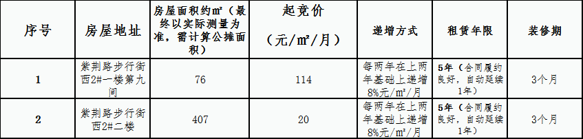 紫荆路步行街西2#一、二楼房屋租赁 竞拍公告