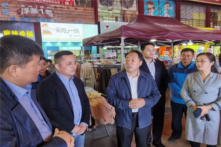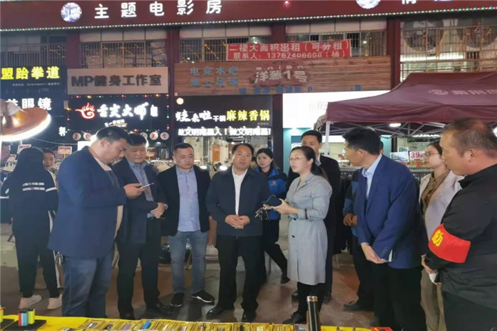 调研中,于立山一行边走边问,深入了解商户经营、夜市提升改造和市民消费等情况。