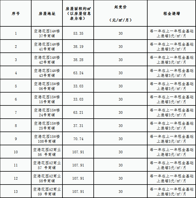 空港花园安置房小区房屋租赁竞拍规则